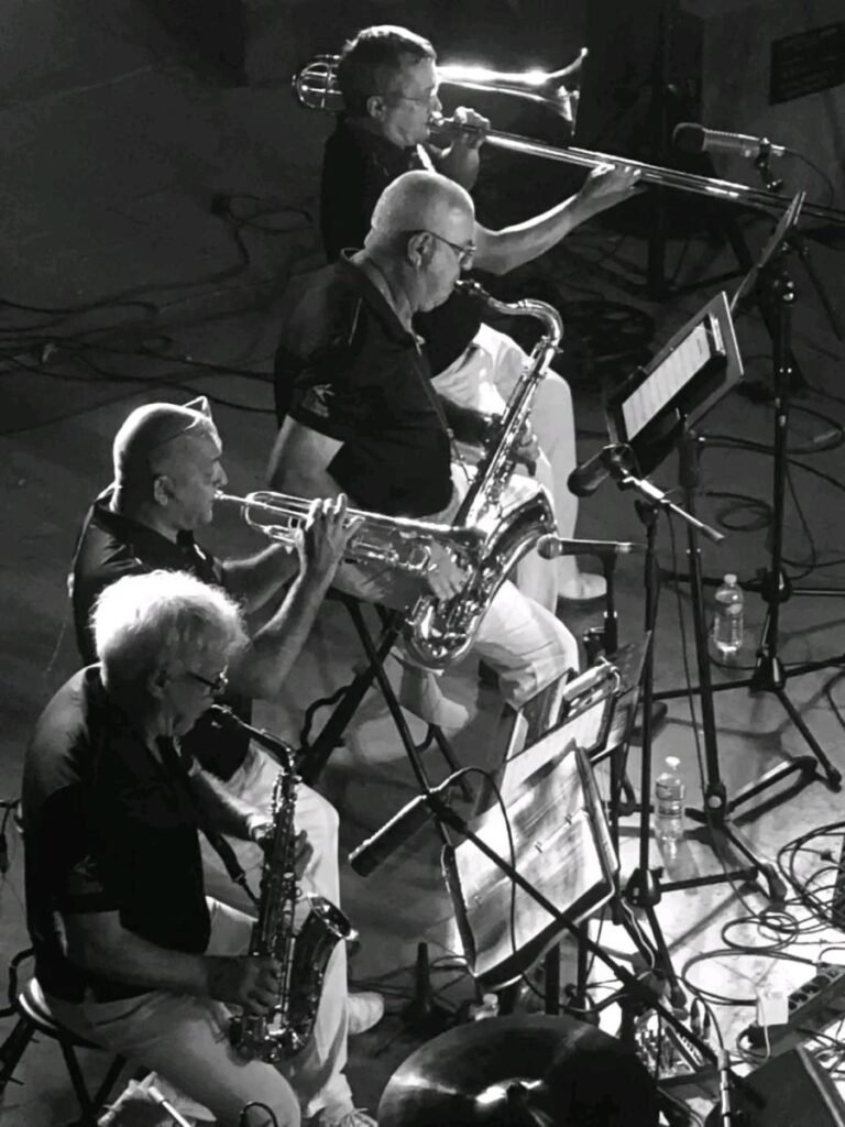 Réunis autour du chanteur Richard Groulx, une section de 4 cuivres (trompette, saxophone alto, saxophone ténor et trombone), accompagnée d’une rythmique (piano, basse et batterie) vous propose un concert jazz. Ce « mini » big band rend hommage aux plus grands crooners tel que Tony Bennett, Michael Bublé, Jamie Cullum (mais pas que..), sans oublier Gino Vanelli ou les groupes Chicago et Tower of power.. La voix époustouflante de Richard Groulx associée aux arrangements ciselés par Igor Nasonov font merveille. Embarquement immédiat, faites vos valises et venez les rejoindre sans plus tarder pour un tour de chant à l’accent swing !
